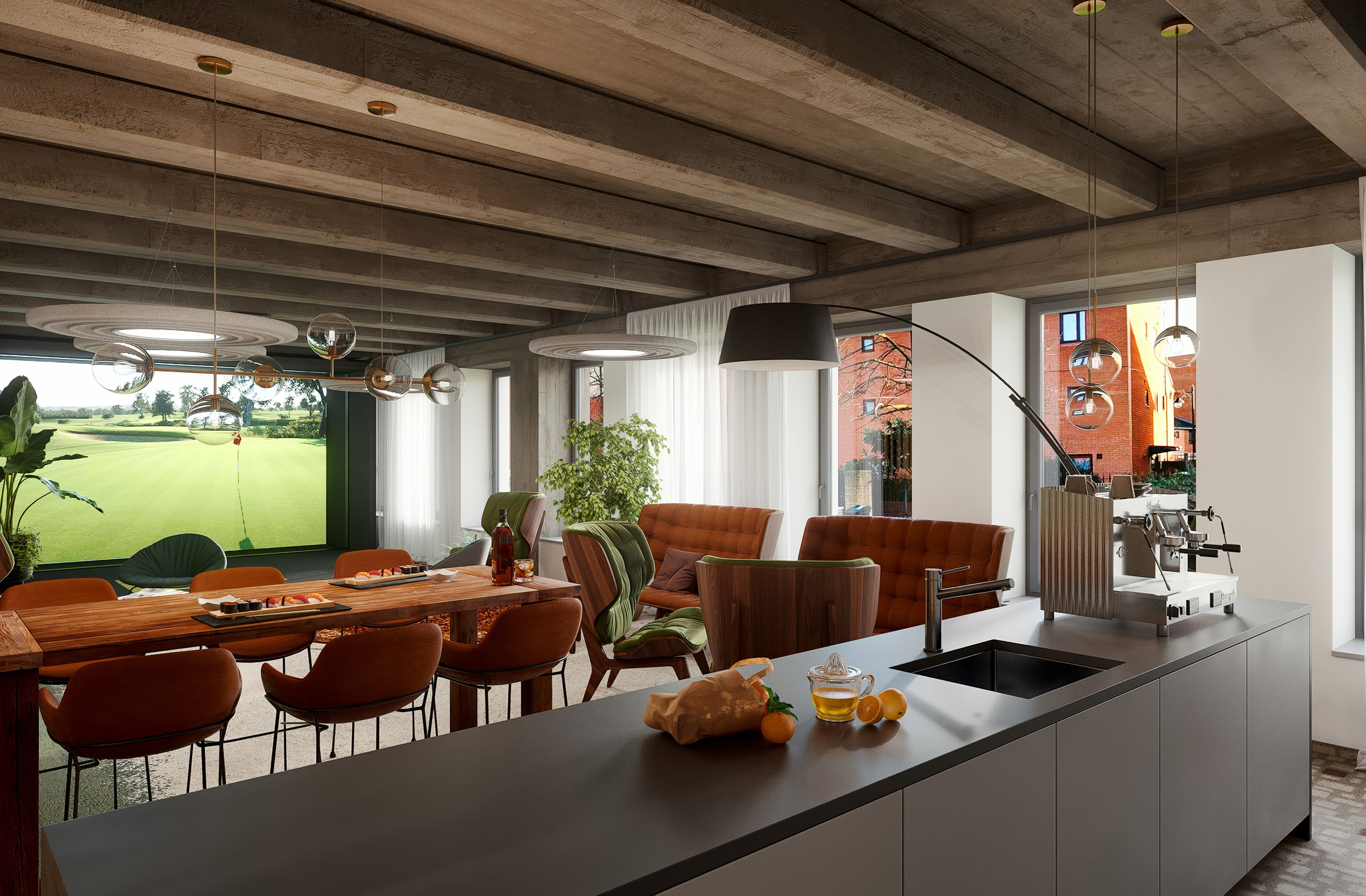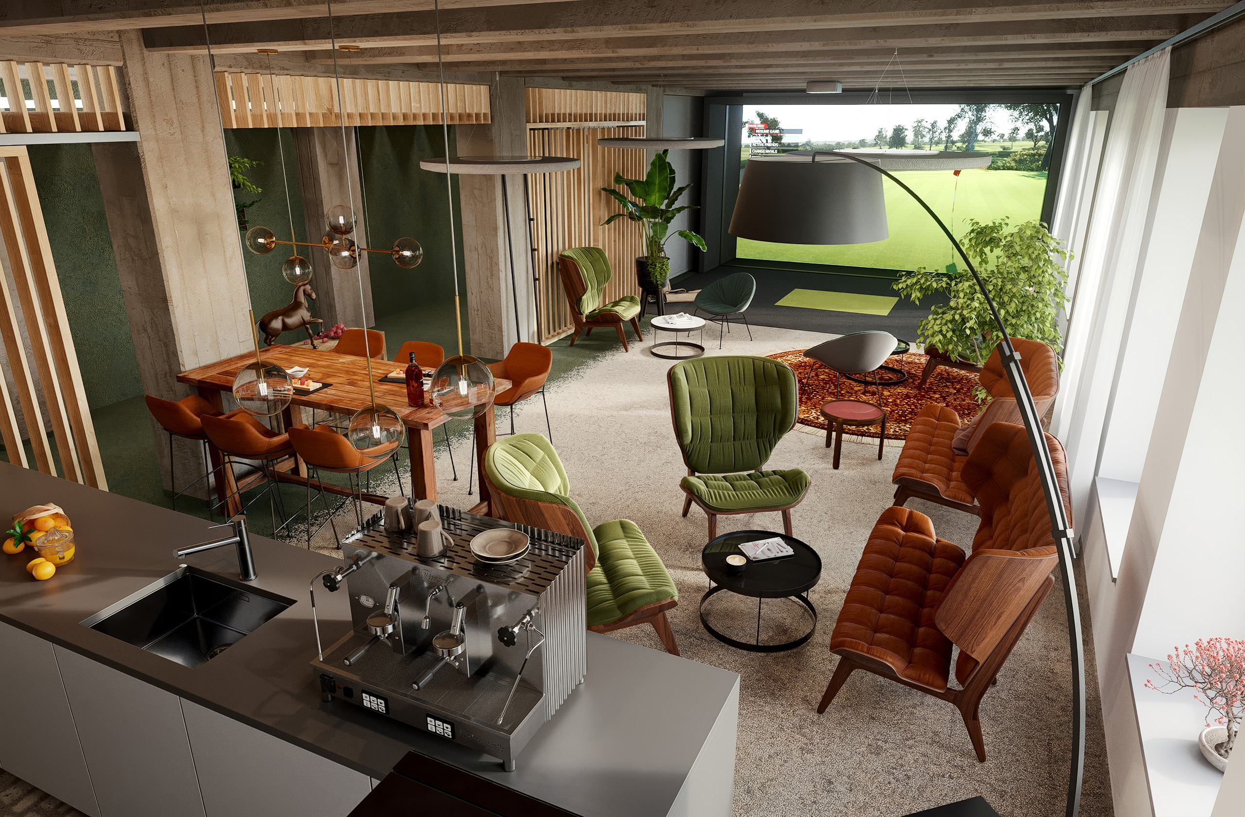 S naší pomocí tedy vznikl prostor pro posezení s rodinou a přáteli, s možností golfového trenažéru, jelikož golf je jejich vášní…