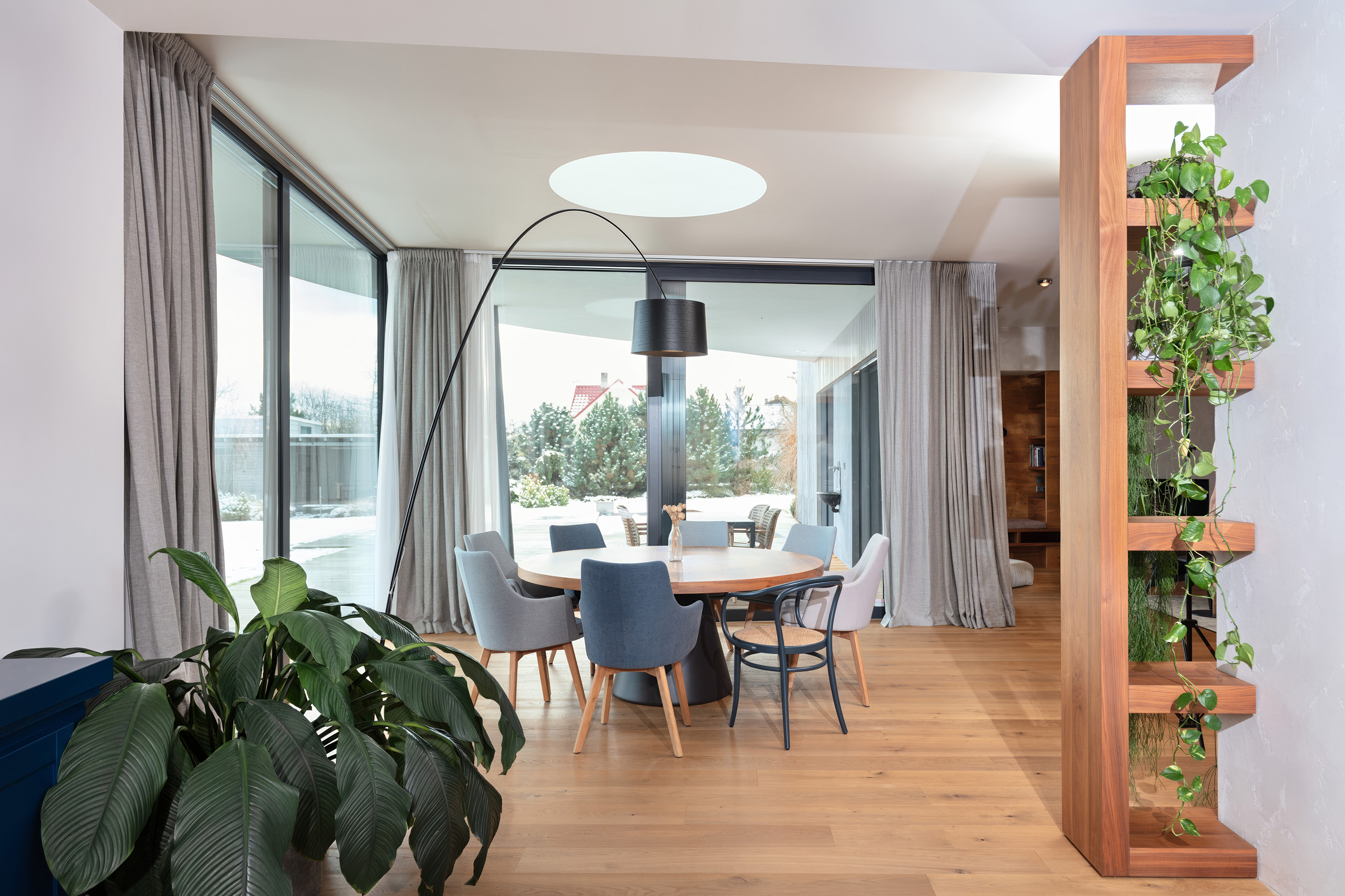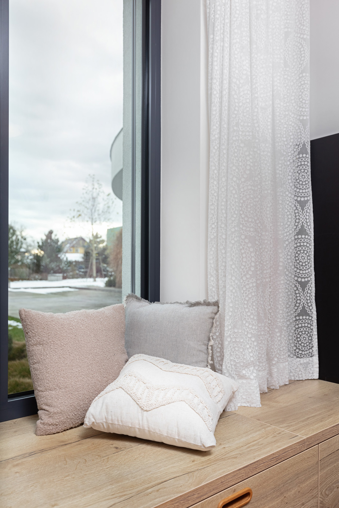 V malé vesnici u Olomouce vyrostl rodinný dům, průběžně s jeho výstavbou vznikal i návrh a pak realizace celého jeho interiéru.